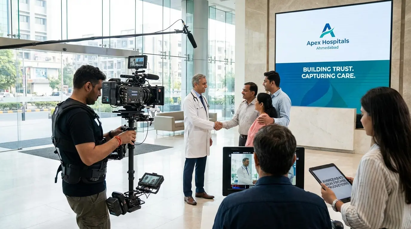 AK Films Production provides professional hospital promotional video production in Ahmedabad, creating cinematic healthcare films designed to strengthen credibility, build patient trust, and enhance institutional reputation.
